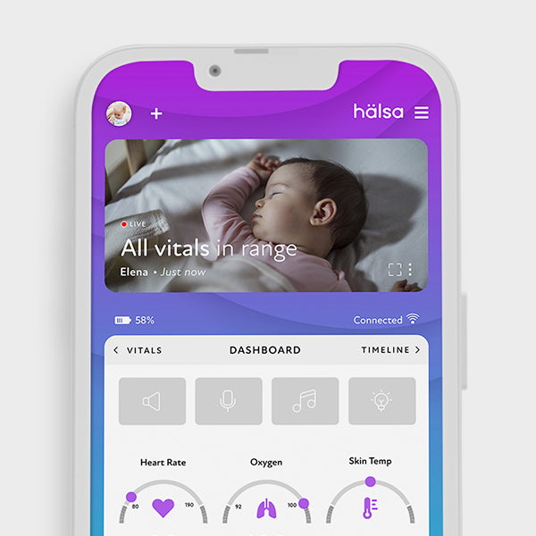 Designed to offer information and context without false alarms, this baby monitor gives you easy-to-understand numbers and where those numbers fall within your baby’s normal range. You can customize those ranges yourself or allow our advanced artificial intelligence (AI) to adjust them as your baby grows.