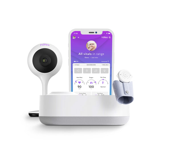 Everything you need to know about your baby's vital wellness information and room environment—all in one system, packaged with the Hälsa Baby Cam.