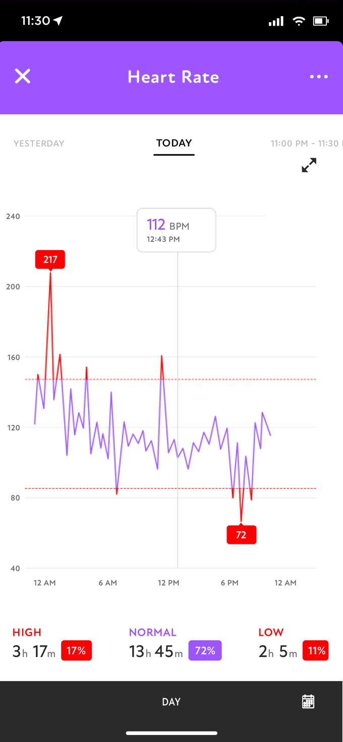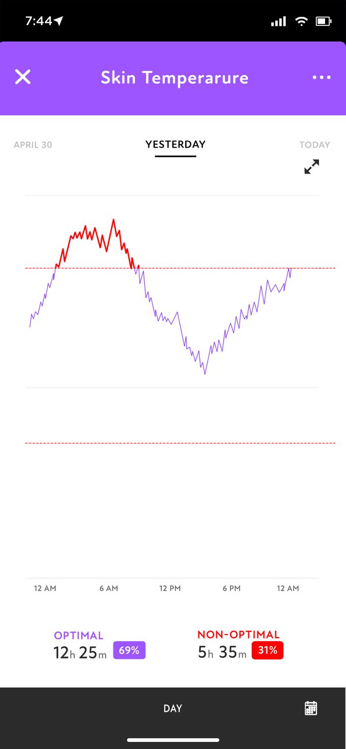 Just like you, your baby’s skin temperature will fluctuate depending on activity or time of day. You’ll be able to track your baby’s skin temperature variation.