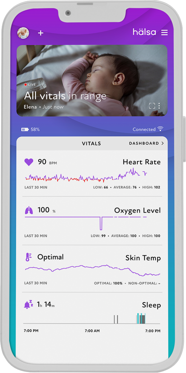 The Hälsa Baby Cam adds another layer of support, so you can sneak a peek at your baby day or night.