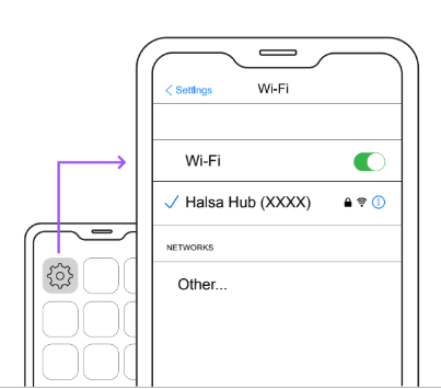 - Confirm Wi-Fi is turned on and you’re connected to the "Halsa Hub (XXXX)" network.