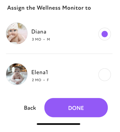 Assign the Wellness Monitor to “baby” (pick preferred profile) and click done.
